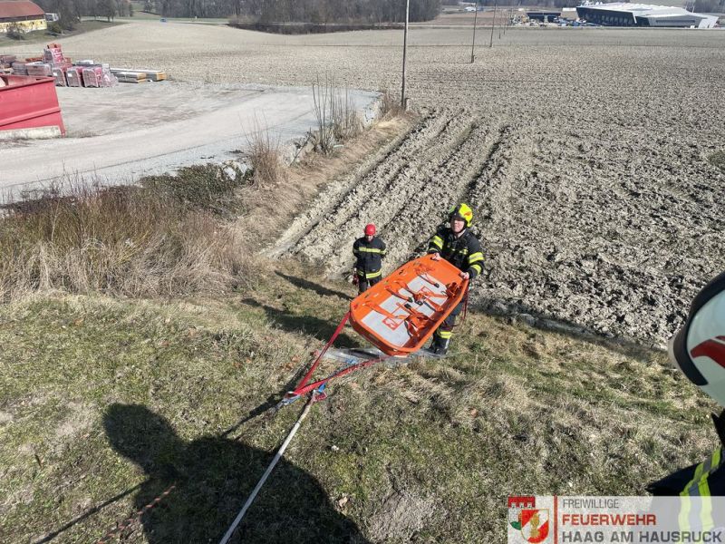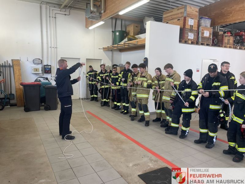 Vormittags trainierten die 25 Teilnehmer das Thema "Absturzsicherung" im Feuerwehrhaus in Haag.