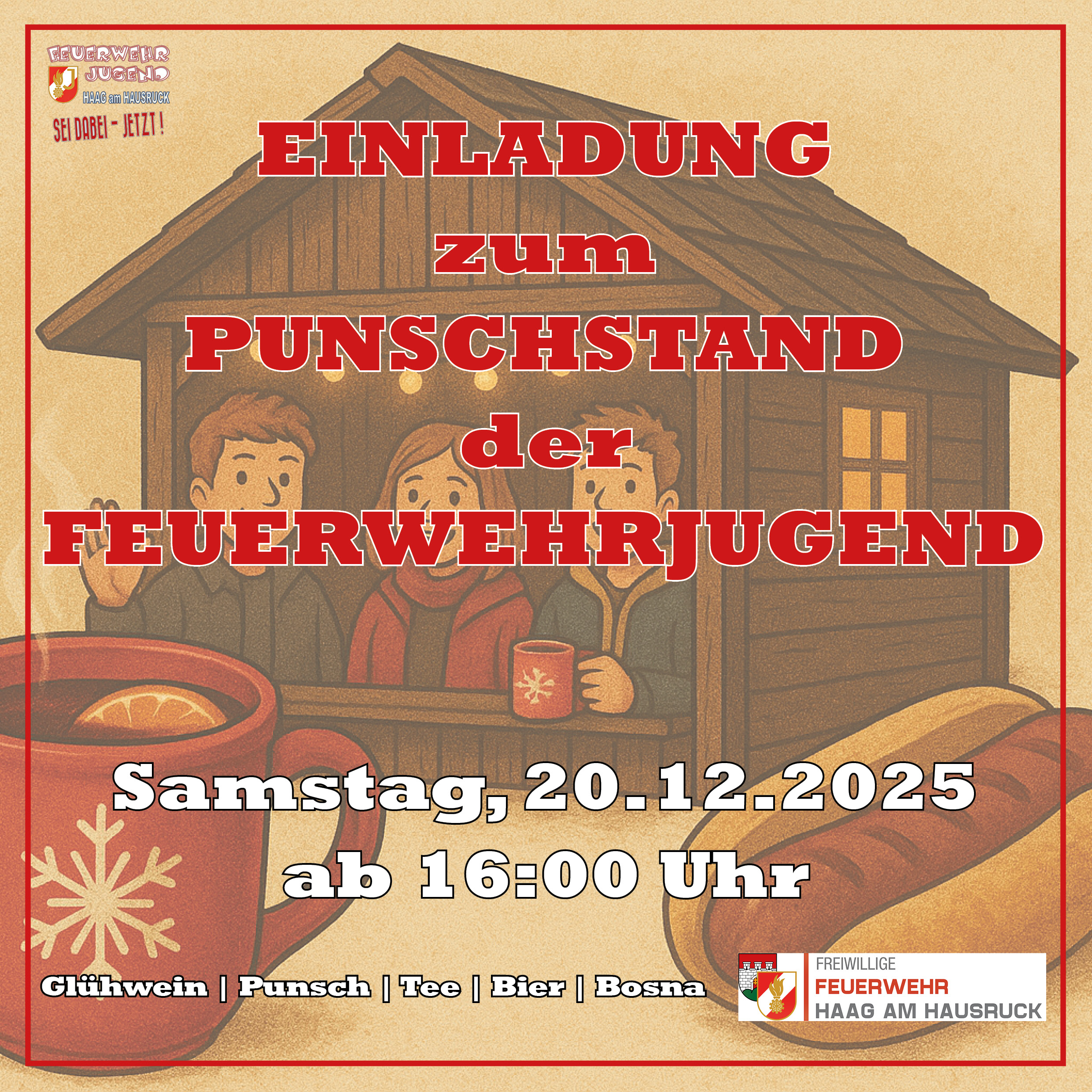 Am 20. Dezember 2025 öffnet unsere Feuerwehrjugend ab 16:00 Uhr den Punschstand am Kirchenplatz.