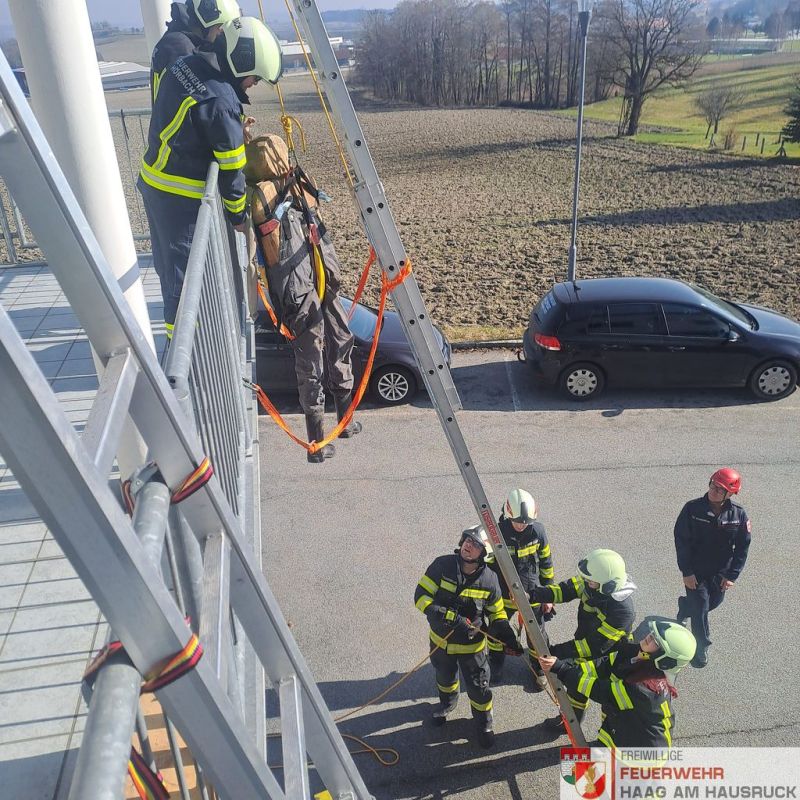 Vormittags trainierten die 25 Teilnehmer das Thema "Absturzsicherung" im Feuerwehrhaus in Haag.