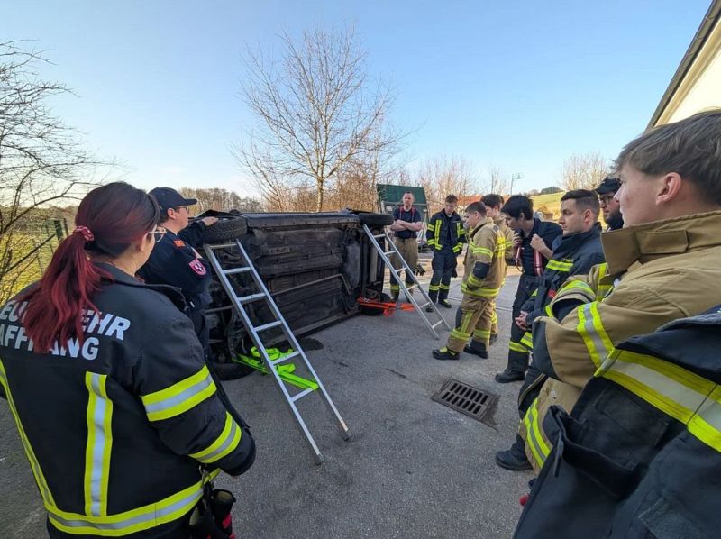 Nach der Mittagspause wurde nach Aistersheim übersiedelt, hier wurde das Thema "Standardmassnahmen nach einem Verkehrsunfall" in Theorie und Praxis geübt.