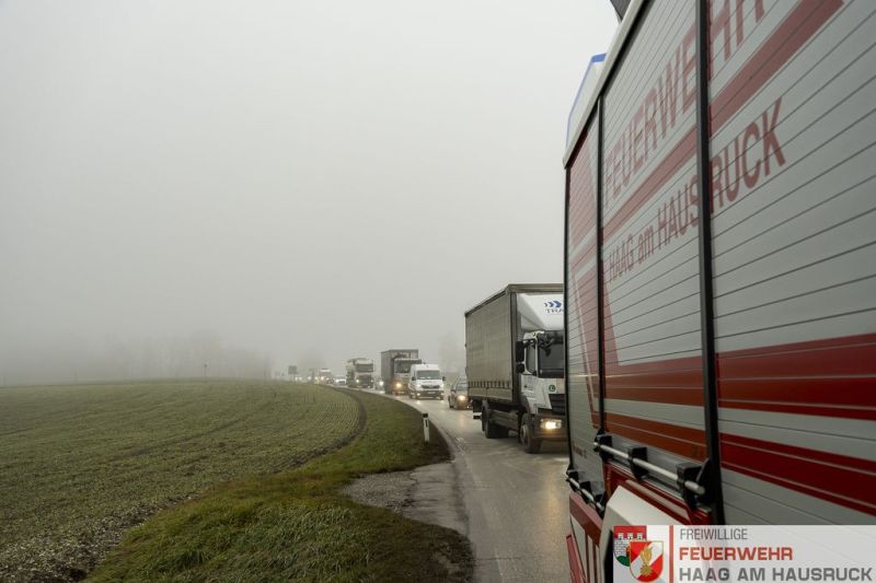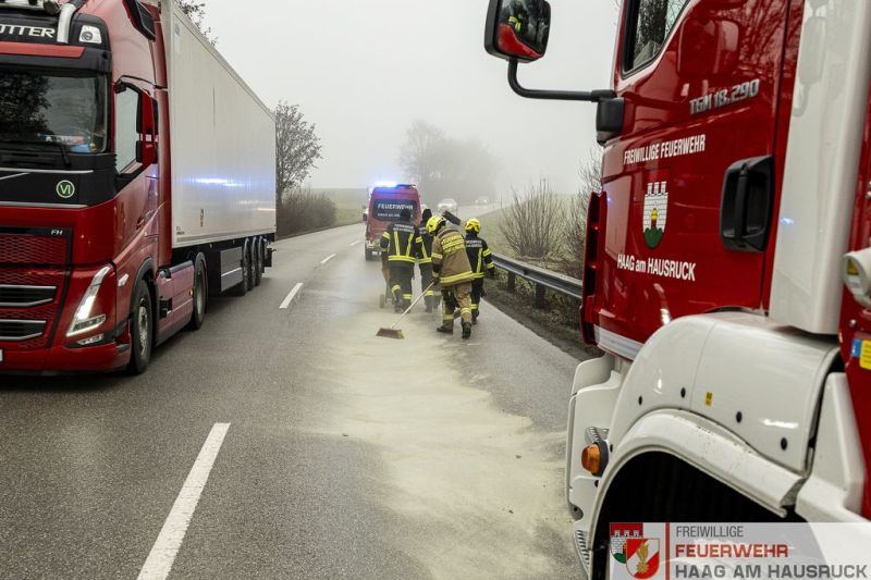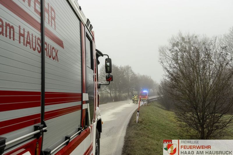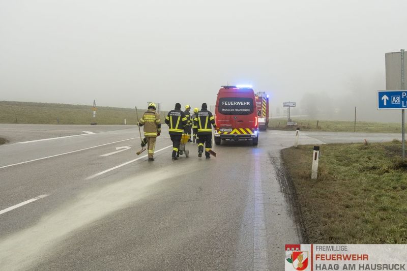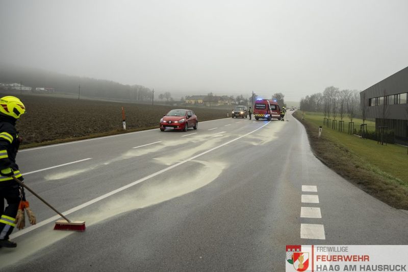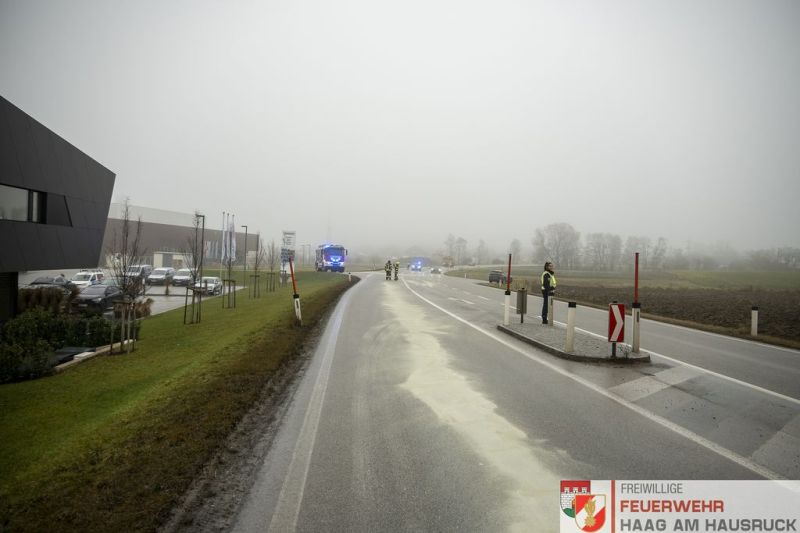 Der Vorfall ereignete sich auf der L519 Gaspoltshofener Landesstraße im Bereich der Umfahrung Haag, die Ölspur zog sich über knapp 2 Kilometer bis nach Reischau.