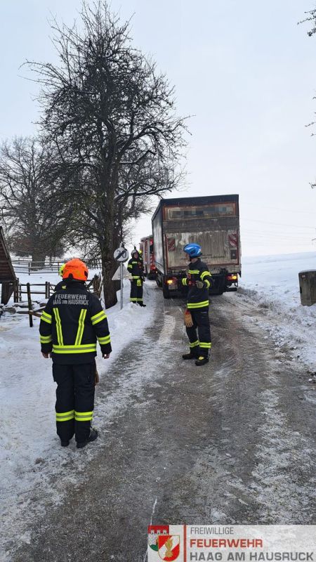Auf Grund von Straßenglätte rutschte am 13. Jänner 2026 ein LKW rückwärts von der Straße.